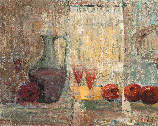 Tihožitje s cvičkom, ciklus Dolina reke Krke, 40x50cm, akril, 2014.