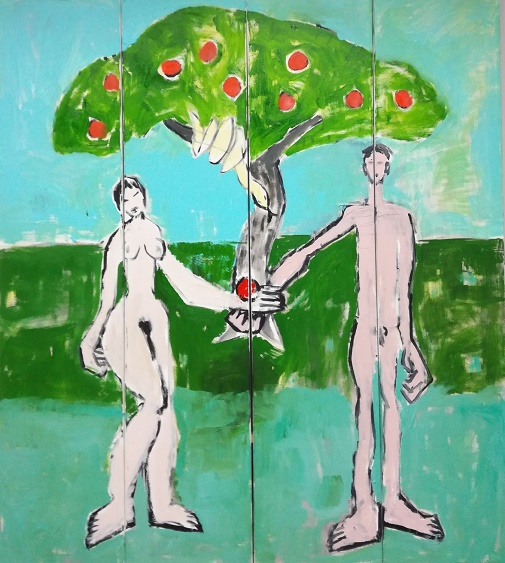 Posebnost tokratne razstave sta prvič Adam in Eva, ki predstavljata vse prej kot človeška prastarša, nosilca krivde izvirnega greha, pri čemer tudi kača ni simbol zapeljivke ter prvega vzroka človekovega padca, marveč gre za celostno rajsko simboliko v smislu medsebojnega ljubezenskega razmerja moškega in ženske, pri čemer nagiba Momova kača bolj k azijskim interpretacijam s pozitivnim pomenom povezovalke med nebom in zemljo, kot pa k judovsko-krščanskemu tolmačenju v smislu poosebljenega zla.