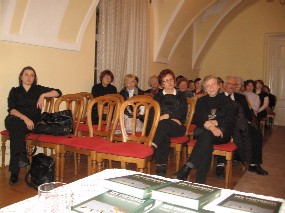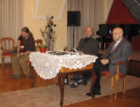 22. januar 2009 - Predstavitev romana Miroslava Slane Mirosa »Štorkljina kri« v Ormožu - Knjižnica Franca Ksaverja Meška v Ormožu je 18. uri v grajski poročni dvorani pripravila literarni večer »Prlekija, biser na božjem popku« predstavila roman Miroslava Slane Mirosa »Štorkljina kri«. Za uvod je zaigrala na flavto Eva Slana, potem pa se je z avtorjem pogovarjal Marjan Pungartnik. Na koncu je zaigral štiri skladbe prleški pesnik in kantavtor Tadej Vesenjak. Fotografije: Eva in Miroslav Slana.