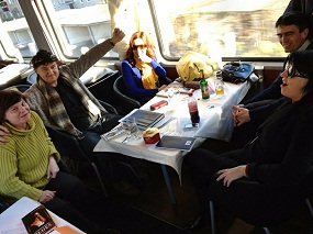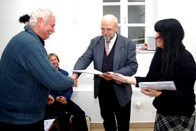 15. december 2012 - Tema pri Guzlu, konec sezone EPK v literarni hiši Maribor. - Ob 17. uri so v Literarni hiši Maribor z bralnim maratonom z geslom »Tema pri Guzlu«, ki, kakor je povedala na začetku Nataša Švikart Žumer, povzema star mariborski idiom za fajrant, končali e-pe-kajevsko sezono. Na začetku je nekaj podatkov o programu v letošnjem letu povedal vodja Literarne hiše Marjan Pungartnik: da se je zvrstilo 180 dogodkov, od katerih jih je bilo 160 v Literarni hiši, dvajset pa v Slovenj Gradcu, Novem mestu, na Ptuju, v Ljubljani, Gradcu, Laafeldu/Potrni, Pecsu, Lepoglavi, Klanjcu, Zagrebu in v Podgorici. Nastopilo je preko 1070 avtorjev, prireditev pa se je udeležilo okrog 7500 obiskovalcev. Ob slovenskih avtorjih, ki jih je nastopilo okrog 600, so bili najpogostejši iz Avstrije (106 avtorjev) in iz Hrvaške (44). Sicer pa so prihajali avtorji še iz Italije, Madžarske, Srbije, Bosne in Hercegovine, Maroka, Kitajske, Singapurja, Francije, Nemčije, Avstralije, Katalonje, Anglije, Zelenortskega otočja, Češke, Romunije, Slovaške in Združenih držav Amerike, k čemur je prispevalo tudi Društvo slovenskih pisateljev s serijo GostiM Besedo. Literarna hiša Maribor je program izvajala tudi s partnerskimi organizacijami iz Hrvaške in Avstrije (Mednarodni klub prijateljev iz Višnjice, Društvo hrvaških književnikov, društvo Avstrijsko-slovensko prijateljstvo, Werkraumtheater iz Gradca, Pavlova hiša Potrna/Laafeld in Institut za slavistiko v Gradcu). Za mestne svetnike, ki jih na prireditve razen častne izjeme Melqarta Mohamada Berroa (enkrat) sploh ni bilo, je rekel, da niti opazili ne bi, če bi jih kdo požrl, saj ne živijo z mestom in ga tudi voditi ne znajo. Literarna hiša Maribor je nagradila tudi najzvestejše obiskovalce: Majdo Senica Vujanovič, Zdravka Kokanovića Kokija, Miša Kolbla, Marjana Holca, Roziko Močnik in Majdo Strnad, fotografa vseh prireditev Ivana Vinovrškega, producentko EPK Petro Narat Palčnik in prostovoljce Slavka Rečnika, Jožico Hladin in Ano Nikolič. Zatem je stekel bralni maraton, na katerem so sodelovali Zdravko Kokanovič, Jana Krajnc, Rozika Močnik, Jan Šmarčan, Danijela Premzl, Bojan Schwentner, Majda Strnad, Tomo Podstenšek, Marina Križnik, Lučka Zorko Titan, Milan Novak, Robert Titan Feliks in Marjan Pungartnik. Nekoliko je zaradi pomanjkanja taksijev zamudila Tihomila Dobravc, pozno je prišel s kitaro Andrej Tomšič, na koncu pa je vse razveselil Marko Grobler. Slovesnost se je končala s šampanjcem in kanapeji z lososom in kaviarjem, loterijo, Martina Demelin pa je prispevala ob dobrem vinu tudi nekaj prigrizka. Prireditve sta se udeležila tudi gosta EPK Petra Narat Palčnik in Zdravko Duša.