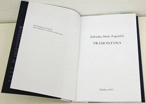 21. november 2012: Na preprogi iz zvezd - Jadranka Matić Zupančič Tramontana - V začetku novembra je pri Mariborski literarni družbi izšla pesniška zbirka Jadranke Matić ZupančičTramontana, ki smo jo ob 18. uri v Literarni hiši Maribor. Z njo se je pogovarjal Marjan Pungartnik. Izdajo knjige je omogočil Javni sklad Republike Slovenije za kulturne dejavnosti v okviru programa kulture etničnih skupin v Sloveniji. Izšla je v zbirki Oglej (št. 19) s spremno besedo urednika Marjana Pungartnika.