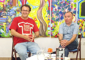 četrtek, 7. junij 2012 - GostiM Besedo - Víctor Obiols in Brane Mozetič - Ob 18. uri sta v okviru programa GostiM Besedo, ki ga izvaja v okviru EPK Društvo slovenskih pisateljev, nastopila katalonski pisatelj Víctor Obiols, njegov gostitelj, ki ga je predstavil in mu tudi zastavil nekaj vprašanj, je bil pesnik Brane Mozetič. Víctor Obiols, ki je ob pisanju tudi glasbenik ,je svoj nastop prepletel z nekaj svojimi skladbami. Njegovo pesem je brala Nina Kokelj, prevajalski del pa je odlično opravil Janko Remec.