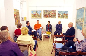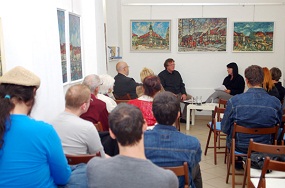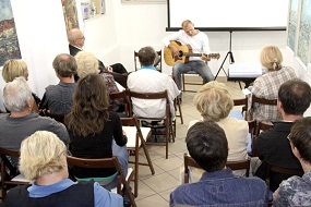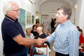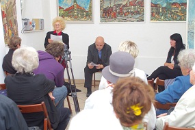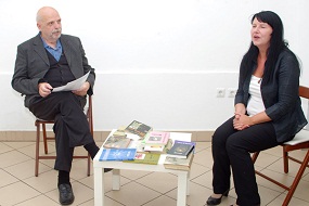 6. september 2012 - Tom Petsinis in Iztok Osolnik - V okviru programa GostiM Besedo sta bila ob 18. uri gosta avstralski pesnik Tom Petsinis in Iztok Osolnik, ki je avtorja predstavil. Pogovor je tekel predvsem o pesniški zbirki My Father’s Tools, z katerega je Tom Petsinis prebral tudi nekaj pesmi. Gre za zanimivega pesnika, ki je po rodu iz Egejske Makedonije in ob grščini zna tudi makedonsko. Prevajalec pogovora je bil spet nezgrešljivi Janko Jemec.
