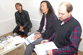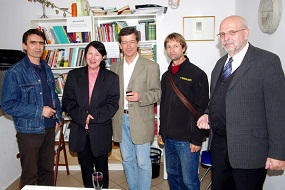 26. september 2012 - GostiM Besedo: Aleš Šteger in Yang Lian (Kitajska) - Ob 18. uri je v okviru programa »GostiM Besedo« nastopil kitajski pesnik Yang Lian, ki živi v Londonu, njegov gostitelj pa je bil pesnik Aleš Šteger. To je zadnja literrna prireditev v okviru programa GostiM Besedo in na začetku se je Nina Kokelj, ki je bila s strani Društva slovenskih pisateljev organizatorka, zahvalala za dobro sodelovanje tudi Literarni hiši Maribor. Nato smo slišali Lianove pesmi v kitajščini in v slovenščini (bral je Aleš Šteger), v pogovoru pa sta razkrila nekaj biografskega Lianovega ozadja, saj je zaradi pesmi ob pokolu na trgu Tian an men izgubil možnost povratka na Kitajsko, pa tudi nekaj poetoloških vprašanj sta odprla. Gosta je predvsem presenetil kitajski napis za Literarno hišo Maribor. Prevajalec je bil spet odlični Janko Jemec. Osrednja gostja v publiki je bila Rebecca Horn, nemška umetnica, ki je pred literarnim večerom odprla svojo razstavo v Umetnostni galeriji Maribor.