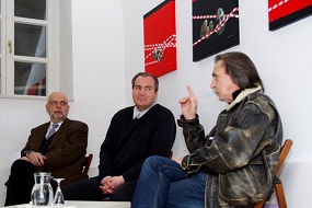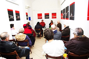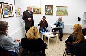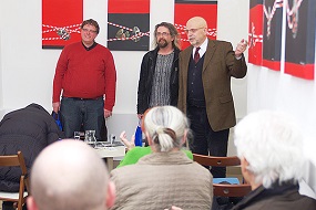 24. februar 2015 - Finissage razstave »Ecce lapis« Dušana Kluna - Sestali smo se na zaprtju razstave »Ecce lapis« Dušana Kluna. Nekatere nove vidike razstavljenih del (zlasti v navezavi na prejšnja slikarjeva dela) je razkril kustos Mario Berdič, o razstavi pa sta govorila tudi Marjan Pungartnik in avtor, Dušan Klun. Sledilo je literarno branje, na katerem so nastopili Lidija Štampar, Cvetka Pestiček, Majda Senica Vujanovič, Katja Zadravc in Zdravko kokanović Koki.
