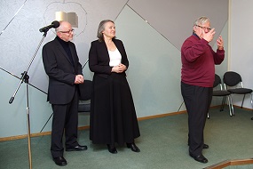 3. februar 2015 - Finissage razstave Suzane Pointinger - Potrč »Moja duša s slikanjem prepeva« - V galeriji RRRudolf je bil ob 18. uri finissage razstave Suzane Pointinger - Potrč »Moja duša s slikanjem prepeva«. Marjan Pungartnik, ki je prireditev vodil, je spregovoril o obisku in odzivih na razstavo, o pomenu povratka Mariborčanov, ki so odšli drugam, v svoje nekdanje okolje in o percepciji slik iz drugih okolij, o razstavi sta govorila še Josip Tavčar in Franci Pivec, ki je spomnil na njeno članstvo v Mladinskem zboru Maribor. Potem so po običaju brali literaturo: Suzana Pointinger - Potrč, Metka Jauk, ki je brala prvič na literarnem večeru, prav tako Edvin Fliser, Barbara Kolarič in Simona Babič, prireditev pa je zaključil Zdravko Kokanović Koki v profesionalnem stilu.