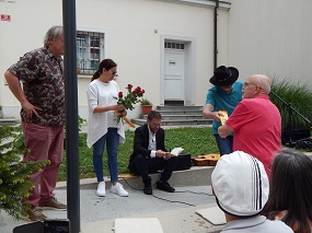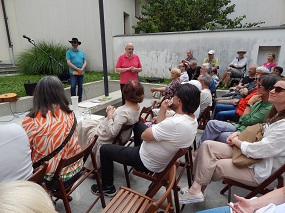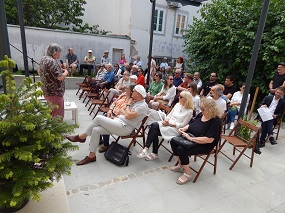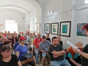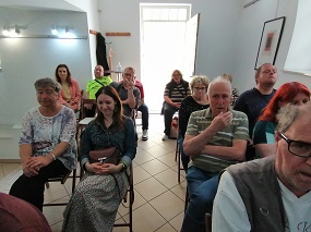 26. slovenski dnevi knjige - mariborski 1. junij 2023 - Kajuh za Ozaro in ŠentLent - Ob 10.30 je bila v Literarni hiši prireditev, na kateri je Maja David predstavila članom dnevnih centrov Ozare in ŠentLent pesnika Karla Destovnika Kajuha. Ob tem jo je na kitari spremljal Zvone Zgrabljič. Publika je dodobra zapolnila prostor Literarne hiše Maribor.
