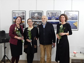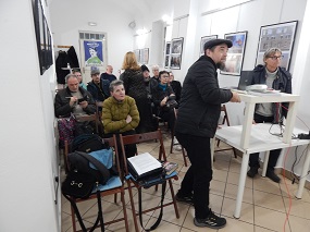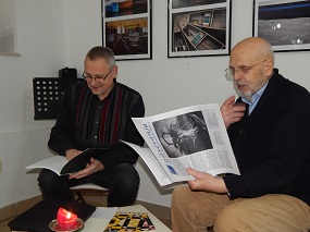 21. februar 2025 - Odprtje razstave Na štiri oči Barbare Gregurič Silič in Maje Špendal - Ob 18. uri smo v galeriji RRRudolf odprli razstavo Na štiri očiBarbare Gregurič Silič in Maje Špendal. Najprej je prisotne, ki so dodobra napolnili galerijo, med katerimi je bilo veliko mariborskih in ljubljanskih fotografov, pozdravil Marjan Pungartnik in predal besedo pobudnici razstave in poznavalko fotografske dejavnosti razstavljalk Tatjani Pregl Kobe. Ta je poudarila predvsem izvirno zasnovo razstave, ki se je ognila potovalni fotografiji – gre namreč za fotografije iz Stockholma – in zastavila nekaj vprašanj avtoricama. Odprtje se je izteklo v živahne pogovore obiskovalcev in razstavne ekipe.