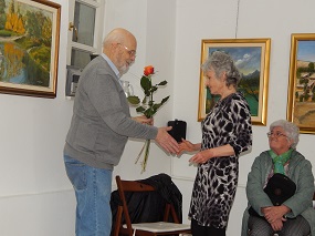 2. april 2025 – Cvetka Pestiček: Nebo stopa v naročje voda - V galeriji RRRudolf smo ob 18. uri odprli slikarsko razstavo članice Kulturnega društva Mariborska literarna družba in članico literarne delavnice za starejše avtorje pri njej Cvetke PestičekNebo stopa v naročje voda. Namesto odsotnega likovnega kritika Maria Berdiča je z zloženke, ki je izšla ob tej priložnosti, njegovo besedilo o razstavi prebral Marjan Pungartnik, ki se je tudi pogovoril z njo o njenem slikarskem delu.
