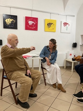 23. april 2025 – Natalija Resnik - Ole in Navid Fadaee Nazer: PREPLET USOD IN KALIGRAFIJE - Ob 18. uri smo v galeriji RRRudolf odprli razstavo Natalije Resnik - OlePreplet usode in kaligrafije, pri kateri je s slikami in opremo knjige Preplet usode sodeloval tudi perzijski slikar Navid Fadaee Nazer. V pogovoru z Marjanom Pungartnikom je avtorica predstavila svojo poklicno kariero najprej pedagoginje in potem voditeljice ateljeja za kaligrafijo in tudi delavnic za osveščeno bivanje na osnovi filozofije Rudolfa Steinerja.