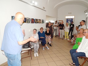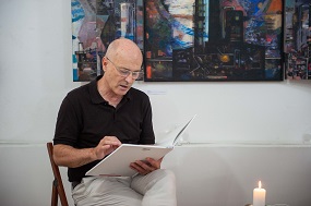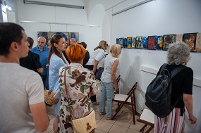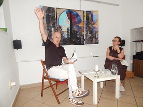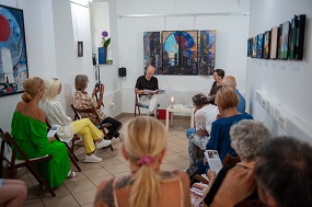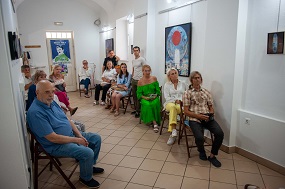 2. julij 2025 - Otvoritev razstave Stojana Špegla Drhtenje časa - Ob 18. uri smo odprli slikarsko razstavo Stojana ŠpeglaDrhtenje časa. O avtorju je govorila likovna kritičarka Tatjana Pregl Kobe in poudarila dvojno naravo njegove umetniške dejavnosti - poezijo in slikanje. Stojan Špegl je prebral nekaj pesmi iz knjige Industrijski motiv s pojasnjevalnimi komentarji.
